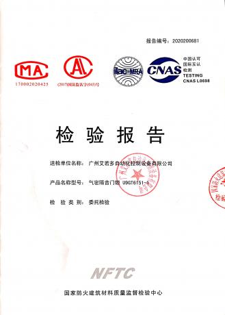 地铁气密隔音门锁(气密锁)防火检测报告如下图: